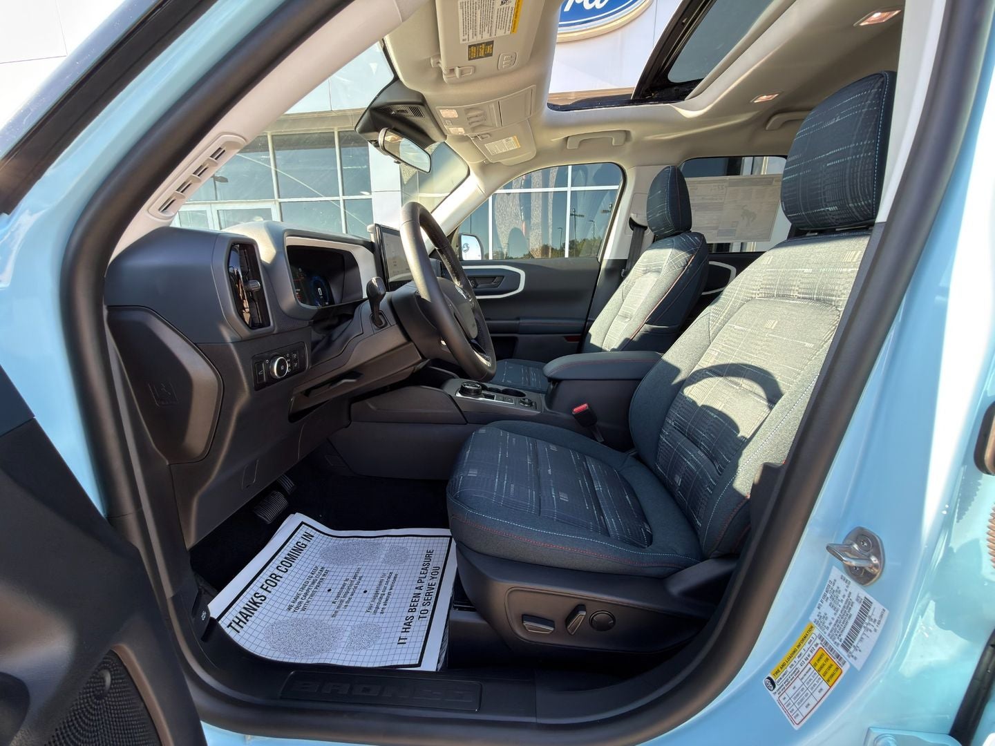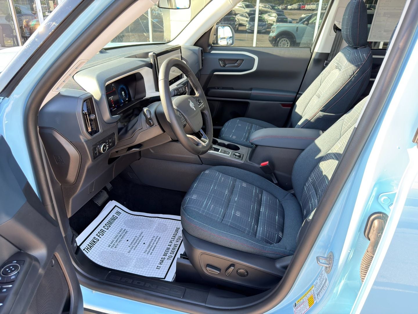 Huge discount $39,860 MSRP, aggressive finance options available! Family owned store for 30 years! 2025 Ford Bronco Sport Heritage 4x4 â Robinâs Egg Blue with the 1.5L EcoBoost and 8-speed automatic, featuring Oxford White wheels and roof, Convenience Package, power moonroof, SYNC 4 with 13.2â screen, terrain management system, Ford Co-Pilot360 Assist+, unique Heritage styling and decals, electronic temp control, and heated premium plaid seats. New factory warranty â call or text today.