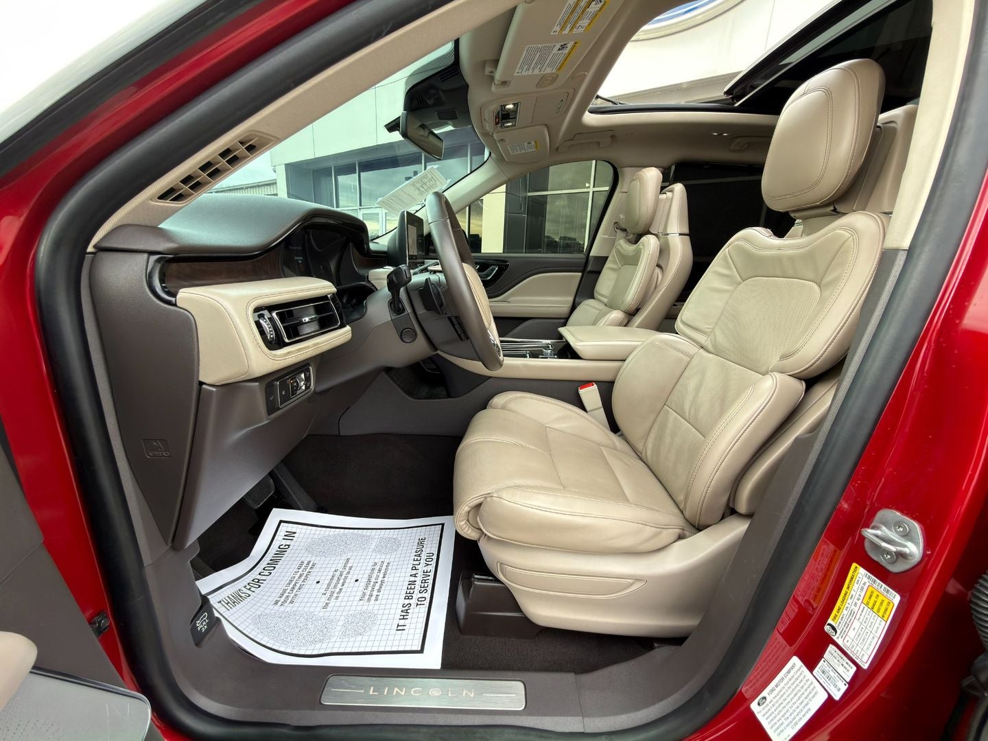 2020 LINCOLN AVIATOR RESERVE AWD RED CARPET LUXURY WITH POWER! RED CARPET METALLIC TINTED, TWIN-TURBOCHARGED 3.0L V6, 10 SPEED AUTO, EQUIPMENT GROUP 202A (ELEMENTS PACKAGE PLUS, LINCOLN CO-PILOT360 PLUS, LUXURY PACKAGE, ILLUMINATION PACKAGE, CONVENIENCE PACKAGE, DYNAMIC HANDLING PACKAGE. PANORAMIC VISTA ROOF, PREMIUM 22" MACHINED ALLOY WHEELS, 360 DEGREE CAMERA SYSTEM, PREMIUM REVEL AUDIO, SYNC 3 WITH NAVIGATION, APPLE CARPLAY/ANDROID AUTO, PUSH BUTTON START, REMOTE START. CLASS IV TRAILER TOW PACKAGE, HANDS-FREE LIFTGATE, HEATED/COOLED FRONT SEATS, HEATED STEERING WHEEL, QUAD-ZONE CLIMATE CONTROL ORIGINAL MSRP $75,890.00. WE SHIP NATIONWIDE. PART OF FORDS REACQUIRED VEHICLE BRANDED PROGRAM AND COMES WITH A 12 MONTH 12,000 MILE SPECIAL FORD MOTOR COMPANY FACTORY LIMITED BUMPER TO BUMPER WARRANTY. STARTS FROM DATE OF YOUR PURCHASE (MAY OVERLAP EXISTING FACTORY WARRANTY, EXCLUDES NORMAL WEAR AND TEAR ITEMS).