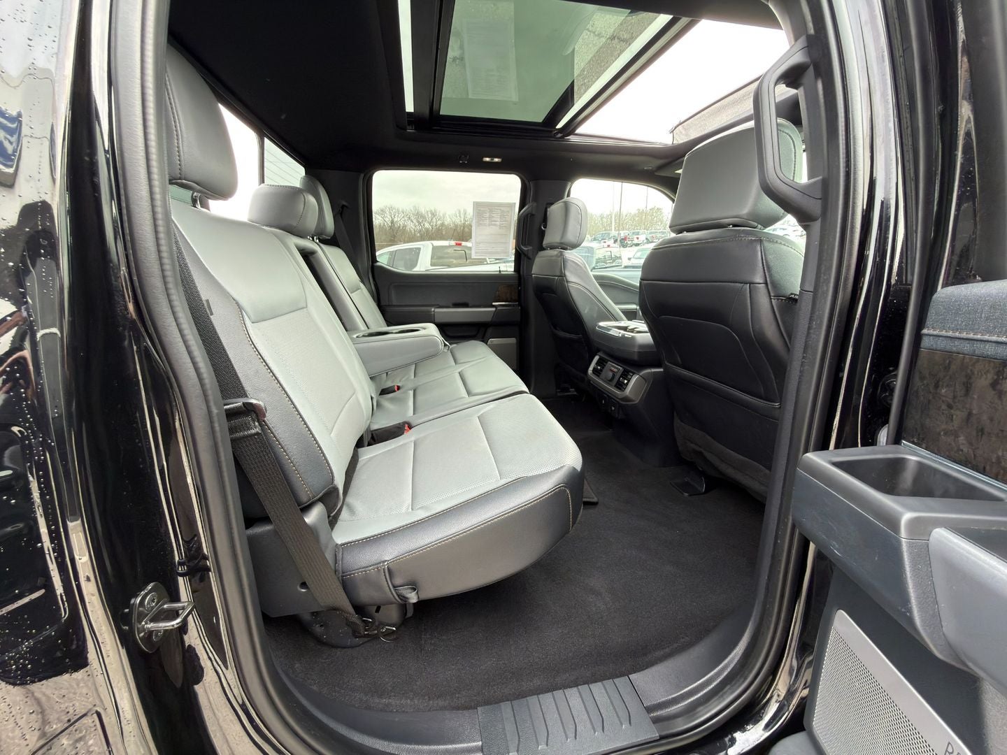 2023 FORD F-150 LIGHTNING LARIAT 4X4 SUPERCREW EXTENDED-RANGE ELECTRIC BEAST. AGATE BLACK METALLIC, DUAL E-MOTOR EXTENDED RANGE BATTERY, SINGLE-SPEED, UP TO 320 MILE RANGE, APPROX. 10.1 HOUR 240V CHARGE. EQUIPMENT GROUP 511A, FORD BLUECRUISE (SUBSCRIPTION REQUIRED), TOW TECHNOLOGY PACKAGE, TWIN PANEL MOONROOF, PREMIUM 20IN ALLOY DARK GRAY WHEELS, E-LOCK REAR AXLE, 8550# GVWR, INTEGRATED TRAILER BRAKE CONTROLLER. 360 DEGREE CAMERA SYSTEM, PREMIUM B&O AUDIO, SYNC 4A 15.5IN SCREEN, WIRELESS APPLE CARPLAY/ANDROID AUTO, HEATED/VENTILATED FRONT SEATS, PUSH BUTTON START, REMOTE START (VIA FORDPASS APP). ORIGINAL MSRP $79,290.00. WE SHIP NATIONWIDE. PART OF FORDS REACQUIRED VEHICLE BRANDED PROGRAM AND COMES WITH A 12 MONTH 12,000 MILE SPECIAL FORD MOTOR COMPANY FACTORY LIMITED BUMPER TO BUMPER WARRANTY. STARTS FROM DATE OF YOUR PURCHASE (MAY OVERLAP EXISTING FACTORY WARRANTY, EXCLUDES NORMAL WEAR AND TEAR ITEMS).