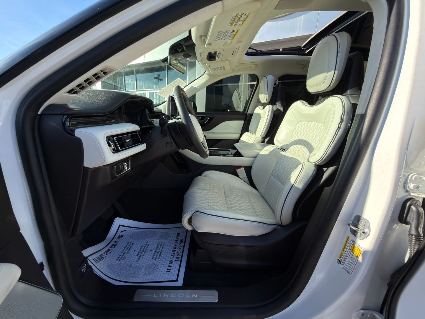 2024 LINCOLN AVIATOR AWD BLACK LABEL TOP-TIER LUXURY, ALL ATTITUDE! PRISTINE WHITE METALLIC, TWIN-TURBOCHARGED 3.0L V6, 10 SPEED AUTO, EQUIPMENT GROUP 800A, BLACK LABEL CHALET THEME, JET PACKAGE, 22" BRIGHT MACHINED ALUM WHEELS, PANORAMIC VISTA ROOF, SOFT CLOSE DOORS, POWER LIFTGATE. 360 DEGREE CAMERA, ADAPTIVE SUSPENSION, PERFECT POSITION 30-WAY ACTIVE MOTION HEATED/VENTILATED FRONT & REAR SEATS, HEATED STEERING WHEEL, QUAD-ZONE CLIMATE, PREMIUM REVEL ULTIMA 3D AUDIO (28 SPEAKERS), SYNC 3 W/ VOICE-ACTIVATED NAVIGATION, WIRELESS CHARGING PAD, INTELL ACCESS W/ PUSH BUTTON START. ORIGINAL MSRP $84,040.00. WE SHIP NATIONWIDE. PART OF FORDS REACQUIRED VEHICLE BRANDED PROGRAM AND COMES WITH A 12 MONTH 12,000 MILE SPECIAL FORD MOTOR COMPANY FACTORY LIMITED BUMPER TO BUMPER WARRANTY. STARTS FROM DATE OF YOUR PURCHASE (MAY OVERLAP EXISTING FACTORY WARRANTY, EXCLUDES NORMAL WEAR AND TEAR ITEMS).